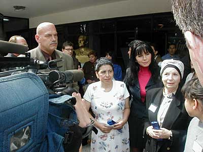 Gov. Jesse Ventura with Parkinson's victims who can live more normal lives with the aid of Medtronic devices.