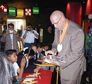 Ventura checks out the work of students at the Papalote Museum.